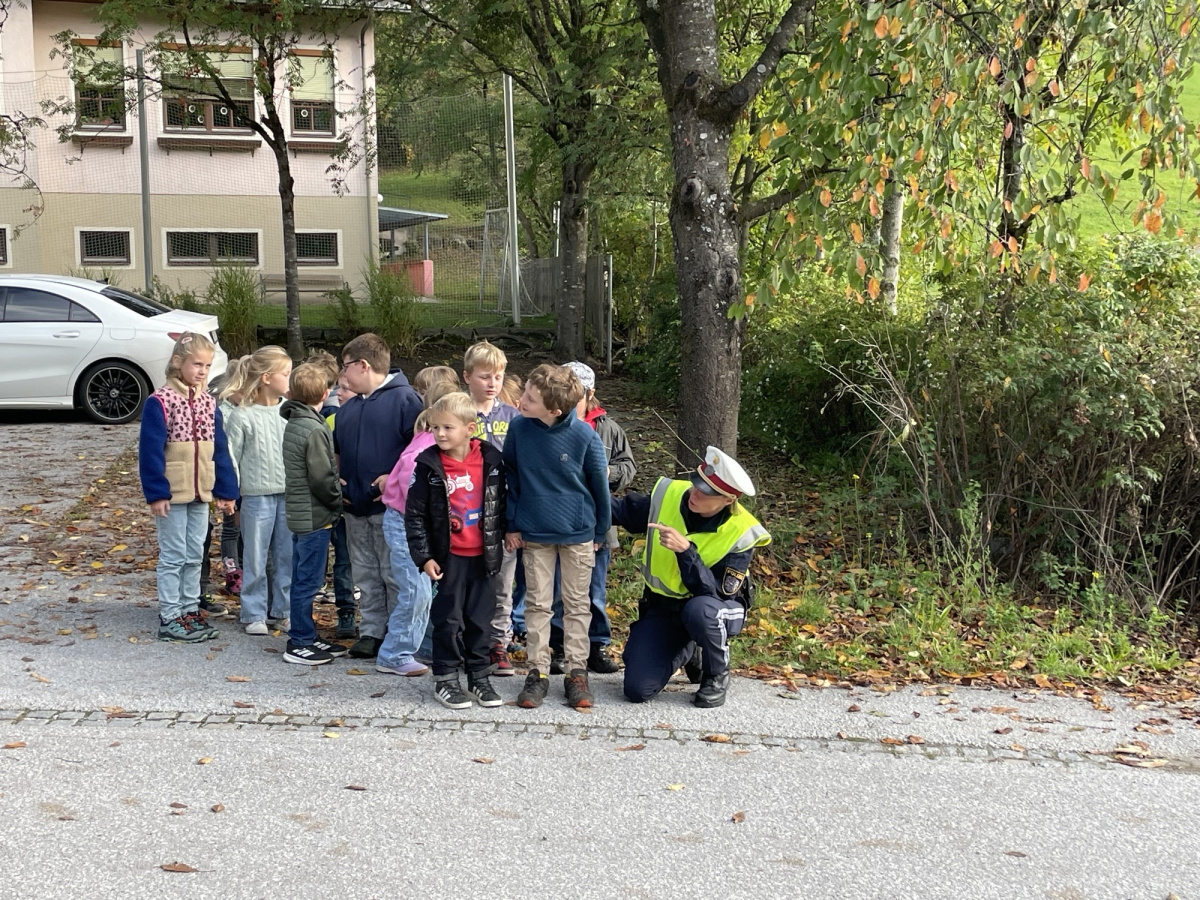 Die erste und zweite Schulstufe übte das Überqueren der Straße.